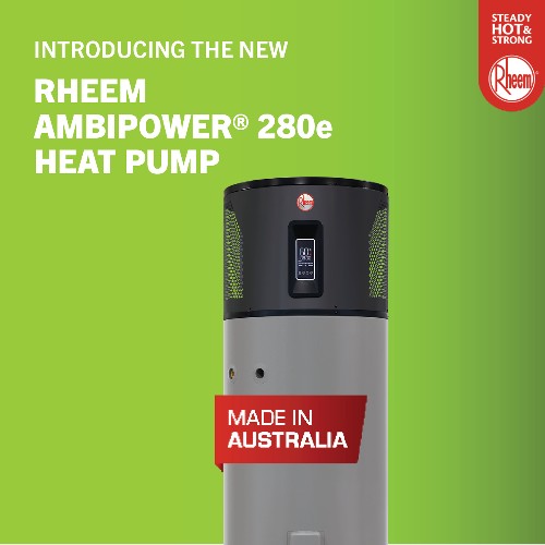 Introducing the latest Rheem Heat Pump - AmbiPower 280e. With ultra-low global warming potential (GWP), a high average COP of 5.2 and made in Australia.